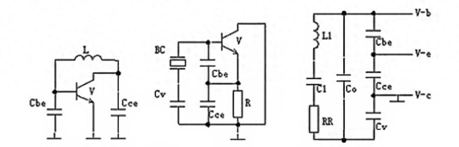 石英晶振一般采用三端式(考畢茲) 交流等效振蕩電路;實際的晶振交流等效電路中,其中Cv是用來調節(jié)振蕩頻率,一般用變容二極管加上不同的反偏電壓來實現,這也是壓控作用的機理;把晶體的等效電路代替晶體后。其中Co,C1,L1,RR是晶體的等效電路。